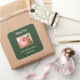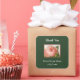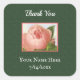 Um autocolante elegante de agradecimento com letra cursiva e letras vintage e uma rosa cabbage rosa com um pequeno botão de rosa começando a abrir enquadrado em rosa sobre um fundo verde caçador com uma textura de tela.