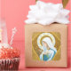Esta design inspira-se num belo decal pintado e bordado numa vestimenta católica romana vestida por massas da Mãe Abençoada. Ela segura um tronco de lírios em suas mãos, um buquê de rosas a enquadra, um halo coroa sua cabeça.