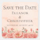 Este adesivo de salvar a data em aquarela em cor de pêssego antigo apresenta belas rosas corais vintage e lindos ramos verde claro. Borda de jardim de rosas doces antigas em seus adesivos de casamento de verão romântico.