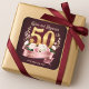 Celebre meio século de amor com este elegante adesivo de aniversário de 50 anos de casamento! Ele apresenta "50º" em uma fonte dourada deslumbrante, emoldurado por rosas brancas e rosadas delicadas. Uma faixa fluida em dourado-rosado exibe lindamente "Aniversário de Casamento" em uma fonte complementar. O fundo marrom profundo garante que os acentos dourados realmente se destaquem. Personalize todo o texto – altere facilmente os nomes e a data para personalizar seu marco áureo! Perfeito para lembrancinhas, convites ou presentes, este adesivo é um memorável deslumbrante de um amor duradouro.