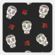 Adesivo Quadrado ROSAS de crânios de açúcar rocháveis RAB em preto