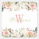 Adesivo Quadrado Rosas Florais Cor-de-Rosa Monograma Elegante Nome