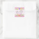 Adesivo Quadrado Rosas Florais Whimsical & Rapariga De Madeira Rosa
