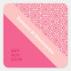 Rosas geométricos Red Wedding Square Sticker apresenta um padrão geométrico de rosas cor-de-rosa, coral e vermelho com cor vermelha complementar que se mistura harmoniosamente como um. A tipografia inclinada simplesmente cria um estilo único com a fita cor-de-rosa-coral a ser destacada.