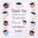 Este obrigado de tendências que você coloca apresenta uma variedade deliciosa de rosquinhas com estilo único — do fosco clássico às guloseimas — todas engenhosamente projetadas para exibir bonés de formatura e diplomas!