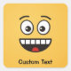 Um clássico emoji com boca aberta mostrando dentes e olhos abertos. Texto personalizado.