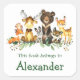 Rotulagem de Reservatórios de Animais da Floresta de Aquarela. Os bebês incluem Urso, Veado, Moose, Raccoon, Coelho Coelho, Raposa e Coruja em folhas de eucalipto e verde florestal. Adicionar Nome.