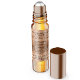 Etiqueta para garrafas de cilindro de perfume que contêm um rosa dourado falso e um design de brilho.