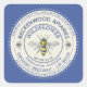 Personalize seus produtos de mel, velas, cera de abelha e mais com este adesivo vintage de abelha mel com borda azul. Personalize com o nome da sua empresa de apicultura no topo e adicione sua localização ou endereço abaixo. Você pode editar o texto descritivo para combinar com o seu produto ou mantê-lo geral para combinar com qualquer coisa que suas abelhas possam criar. Duas abelhas vintage adicionais atuam como pontos de bala neste design.