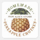 Rótulo editável de conserva de abacaxi caseiro com ilustração de abacaxi em estilo vintage. Crie seus próprios rótulos para suas receitas caseiras favoritas. Perfeito para conservas, presentes caseiros ou como organizador de despensa.