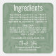Ei, criadores! Criar um rótulo de ingredientes para os seus produtos ecológicos ou orgânicos? Nosso design, com um tom verde sensual e elementos de folhas tropicais botânicas, incorpora sofisticação minimalista. Com tipografia limpa e clássica, é perfeita para destacar os elementos dentro de suas criações naturais. Elevem sua elegância de marca e imagem ecologicamente consciente com este elegante rótulo. O espaço para os componentes do seu produto, os detalhes de peso e o nome da sua empresa garantem um toque profissional que ressoa com a delicadeza da natureza. Que o vosso rótulo fale muito sobre o vosso compromisso com a qualidade e a sustentabilidade!