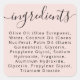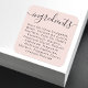 Cor-de-rosa clara, moderna ou clara, ou ingrediente de cor personalizado listando o rótulo do produto com o texto "ingredientes" em uma letra elegante de script de caligrafia. Alterar cores, fontes, mover e redimensionar o texto com a ferramenta design. Siga-nos no Facebook: @business stationery para mais produtos, notícias, vendas e muito mais.