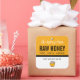 Um design de rótulo de produto de mel limpo para apicultores e apiários que vendem mel cru, em fundo de mel.