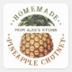 Rótulo editável para conserva de chutney de abacaxi caseiro com ilustração de abacaxi em estilo vintage. Crie rótulos para suas receitas caseiras favoritas. Perfeito para conservas, presentes caseiros ou como organizador de despensa.