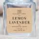 Rótulo de produto elegante com o seu logotipo personalizado e o nome ou fragrância do produto em uma fonte serifada elegante em um fundo impresso com aparência de papel Kraft marrom. Personalize fontes e cores de fontes, mova e redimensione o logotipo e o texto com a ferramenta de design.