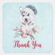 Obrigado, colantes com uma pintura de aquarela branca e fofa de um cão rouco vestindo um chapéu azul de Papai Noel.