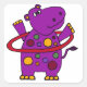 Adesivo Quadrado Roxo Engraçado Hippo Jogando Hoop Hula