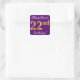 Adesivo Quadrado Roxo, Faux Dourado 22º Aniversário + Nome Personal