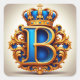 A lavish blue letter B monogram framed by intricate gold scrollwork and a regal crown, creating a bold, high-end emblem ideal for luxury branding, invitations, and classic design themes.