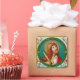Este rotunel apresenta Ruas: James the Less ombendo um clube grande e pesado, um clube cheio, o instrumento do seu martírio e o seu símbolo primário. As mãos dele dobradas em oração não é apenas uma pose piedosa, mas outro atributo significativo: Tão intensa foi sua vida de oração que a Rua. James rendera calos grossos em seus joelhos ganhando o apelido "[Old] Camel's Knees"! (Eusebius, Hist. Eccl. 2:23-24 após o Hegesippus). + Banquete: 3 de maio + Crédito de Imagem (JMAS 05): Imagem antiga de Ruas. James the Less, de um impressão de devoção do final do século XIX, em cromolithografia com sotaques de marrãs, originalmente publicado por Josef Müller, Art Publisher, Munique, Alemanha, da coleção privada de efemérsia religiosa do designer. A imagem é uma das doze da série Apostle (nº 12155) do editor.