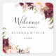 Este salto de boas-vindas do casamento floral rústico e colorido é perfeito para um casamento moderno. A design apresenta coloração d'água rosa, roxa, vermelha e burgundy, agrupadas em buquês elegantes com folhagem verde, inspirando beleza natural. Estas etiquetas são perfeitas para bolsas de boas-vindas de hotéis e casamentos de destino.