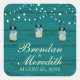 Este adesivo deve ser usado para sua mesa de bufê doce de casamento para caixas de favor, ou bolsas, bolsas de vestidos de hóspedes e muito mais! Uma corda de luzes penduradas com três frascos de mason brilhantes. Um fundo de madeira Rústica de Teal Escuro. Perfeito para o seu Evento Mason Jar Themed. por favor, envie-me um e-mail para paula@labellarue.com se precisar de uma mudança de cor.