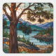 Adesivo Quadrado Rustic mountain range landscape stain glass