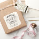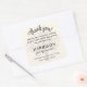 Ideal para criar uma sacola de brindes para os familiares que estão partindo. Uma árvore genealógica translúcida sutil, um 'Obrigado!' em escrita elegante, uma nota pessoal dos anfitriões e o nome da reunião de família estão presentes neste adesivo quadrado de 3" para sacola de lembrancinhas, etiquetas ou cartões. O fundo é branco floral. Você receberá uma folha com 6 adesivos. Personalize facilmente o texto para torná-lo seu usando o modelo da Ferramenta de Design fornecido. Você terá a opção de editar a cor, o tamanho, o estilo da fonte e muito mais. Uma folha de adesivos de 1,5" (20 unidades) também está disponível.