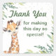 Adesivo Quadrado Safari Jungle Giraffe Obrigado Festa primeiro aniv