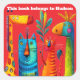 This customizable sticker sparks creativity in your child's space or placed inside a favorite book with vibrant, fun, neon orange, blue and green hues abstract jungle animals with a red background. Designed to bring a burst of color and a playful, positive vibe to any child's books, the