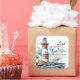 Sticker com uma escritura de citação inspiradora retrata um farol vermelho e branco numa costa oceânica rochosa. Ele apresenta um poderoso e encorajador Salmo Verso Bíblia 27:1, "O LORD é minha luz e minha salvação; Quem devo temer? O LORD é a força da minha vida; De quem devo ter medo?"