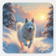 Adesivo Quadrado Samoyed Snowy Mountain Adventure Christmas