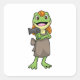 Adesivo Quadrado Sapo como cabeleireiro com secador de cabelo