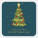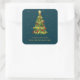 Compartilhe a alegria das festas com este adesivo quadrado elegante com uma árvore de Natal com floco de neve dourado brilhante em fundo azul-turquesa. Pré-configurado com “Saudações de Fim de Ano” e espaço para o nome da sua família, é perfeito para selar cartões de Natal, adicionar um toque especial aos presentes ou personalizar sua papelaria de temporada. Uma escolha sofisticada para amigos, familiares e celebrações festivas.