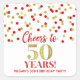 Anima-se a 50 anos de festa de aniversário por etiquetas adesivas com ouro e confete vermelho.