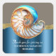 dd a refined finishing touch to your wedding favors with this elegant round thank you sticker featuring a beautifully detailed conch shell in ocean blue, soft gold, and ivory tones. Set against a warm taupe and faux deep blue background, the design blends coastal charm with understated luxury for a timeless, sophisticated look.