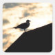Uma Gaivota Herring sentada sobre um telhado silenciada contra um céu macio e ouro à noite.
