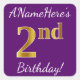 Adesivo Quadrado Segundo aniversário Dourado Roxo + Nome Personaliz