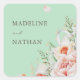 Adesivo Quadrado Selos De Envelope De Buquê Floral Mint Green & Pea