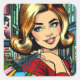 Adesivo Quadrado Senhora retrô com Meio século de sacos de compras