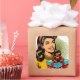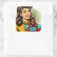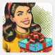 Adesivo Quadrado Senhora Retrô segurando um presente de aniversário