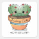 Um cacto verde e bonito com flores rosa e vermelhas se senta em um pote bronzeado que diz, se sentindo fofo em uma fonte de script. Abaixo disso, em uma fonte preta, as palavras podem morrer mais tarde, o que você pode personalizar para dizer exatamente o que você quer.