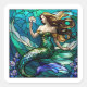 Adesivo Quadrado Sereia de vidro contida admirando uma flor