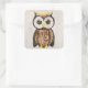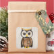 Une chouette aux grands yeux, entièrement composée de pièces de bois. Les stries et les veines du bois complètent le design avec élégance.