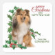 Adesivo Quadrado Shetland Sheepdog Red Berry Holly Christmas