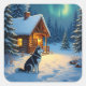 Adesivo Quadrado Siberian Husky Snowy Cabin Christmas Painting