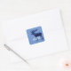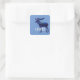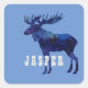O adesivo quadrado tem silhueta alce com preenchimento celeste e texto personalizável sobre fundo azul claro
