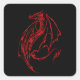 Adesivo Quadrado Silhueta de Fantasia de Dragão Tribal Vermelho Fer