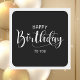Simples Black & White Modern Script Happy Birthday Square Sticker