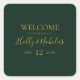 Este simples Natal elegante | o adesivo quadrado verde de boas-vindas é perfeito para o seu casamento no inverno moderno minimalista. A clássica caligrafia de luxo de ouro, junto com o tradicional fundo verde, é certamente para completar a vibração colorida que você está procurando. Você pode personalizar com suas próprias fotos ou gráficos ou mantê-los como estão. Não se esqueça de olhar o resto da coleção para completar o tema do casamento!